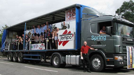 For the second year in a row, in the Scottish Sun Edinburgh Festivals' Cavalcade 2008, Tempo Musical Productions have won the title of Best Festival Float. This success is due to a massive team effort from the design to the construction and the performance! A special thank you to Greg Donnelly, Eddie Baillie and Graham our friendly and obliging driver. None off this would be possible at all without the generous support we have received from Spring Distribution (Scotland) Ltd.